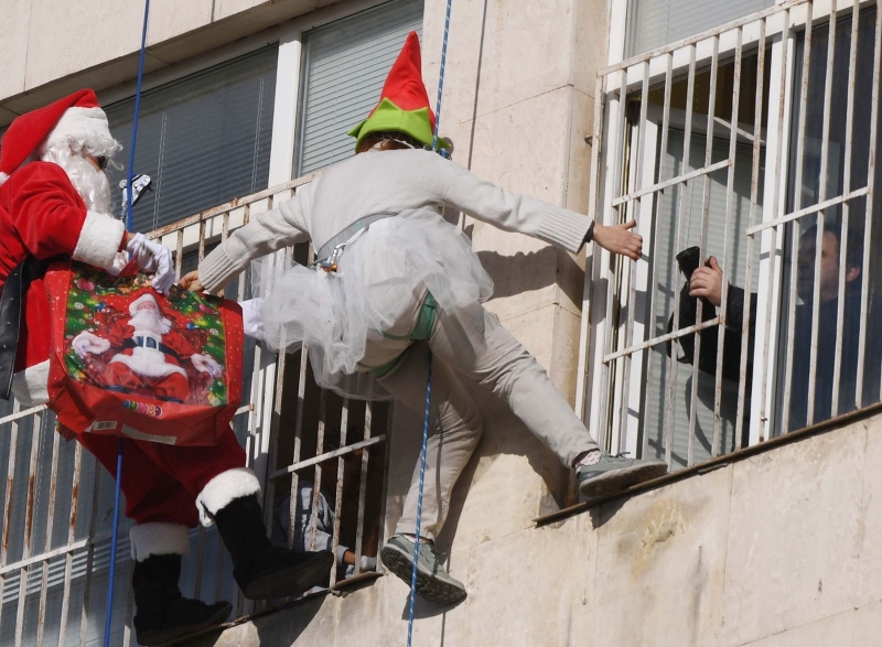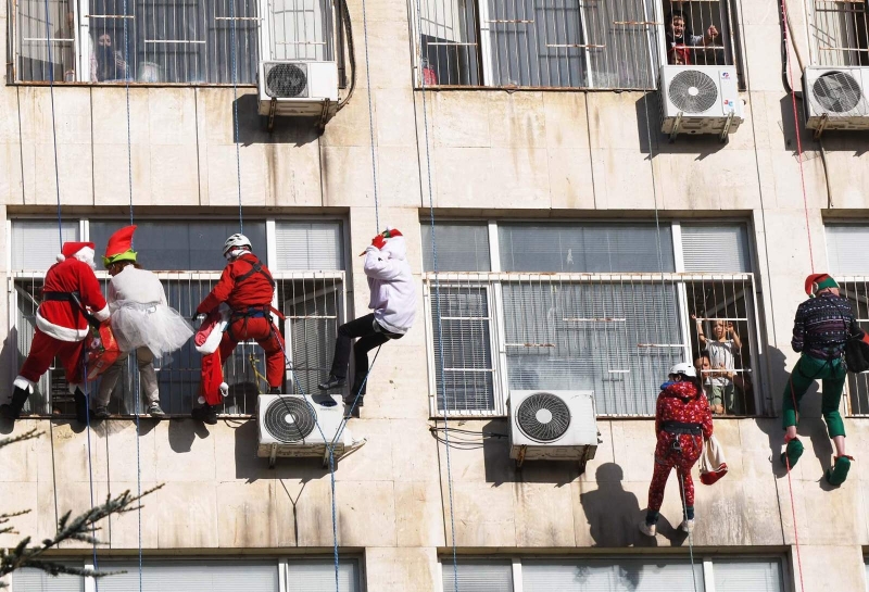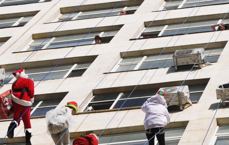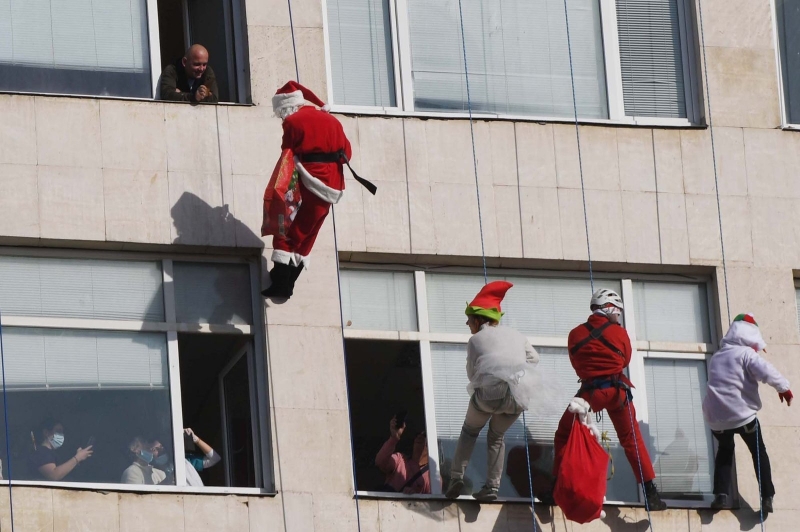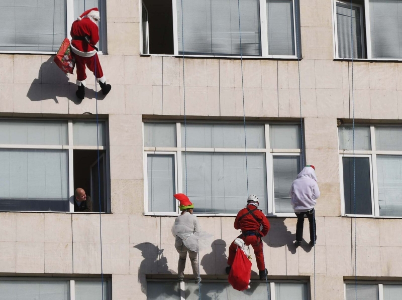 Дядо Коледа и Снежанка заедно с джуджета се спуснаха вчера от покрива на УМБАЛ „Св. Марина“ - Варна и зарадваха децата с подаръци.