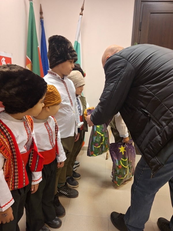 Кметът Иван Костовски и заместник-кметът Илиян Буковски посрещнаха коледарите с топли гевреци и подаръци, за да покажат благодарност за пазените традиции.