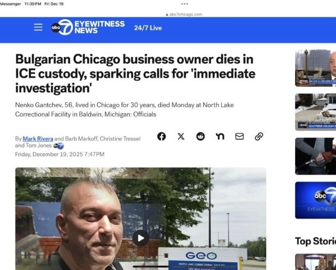 В понеделник вечер съпругата се обезпокоила, когато не получила обичайното обаждане. Проверка в уебсайта на ICE показала, че той е „освободен“. На следващата сутрин обаче била уведомена от Българското посолство, че мъжът ѝ е починал в затвора на ICE. Оттогава не е получила повече подробности.