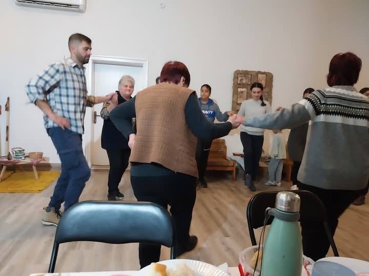 Баба Пенка прекади с тамян храната и благослови всички присъстващи, а Вики ни поздрави с няколко рождественски песни.