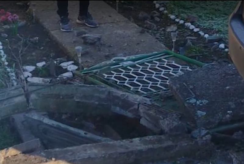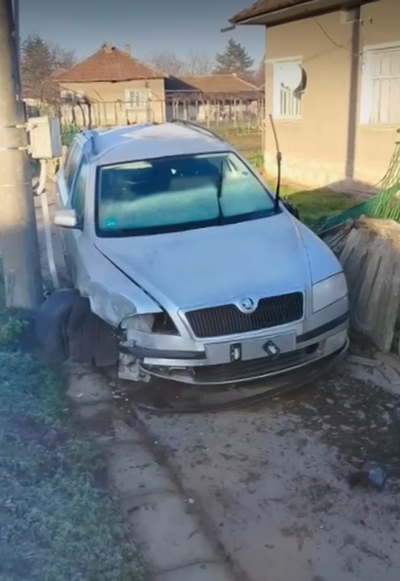 Водачът е преминал през насрещното платно, колата се е качила на тротоара, отнесла е оградата на къщата на Ангел Борисов и се спряла между електрически стълб и ограждението.
