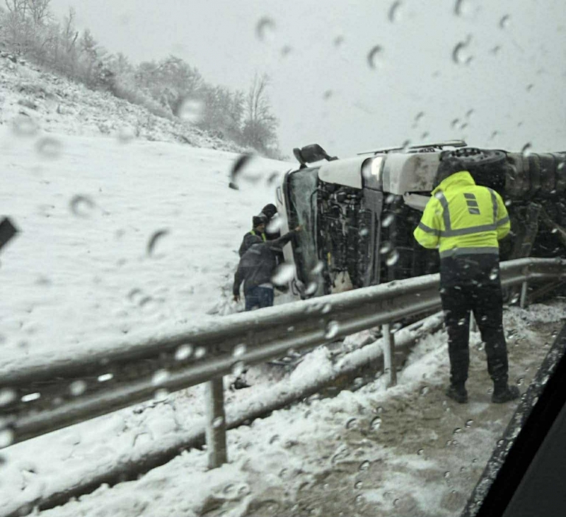 Апелираме шофьорите да не тръгват на път, ако имат такава възможност, или да се въоръжат с търпение, в случай, че вече са в трафика. Заради катастрофата движението на камиони по скоростния път Мездра-Ботевград ще бъде спряно поне за 3-4 часа, докато дойде специализирана техника, която да го изтегли на безопасно място.