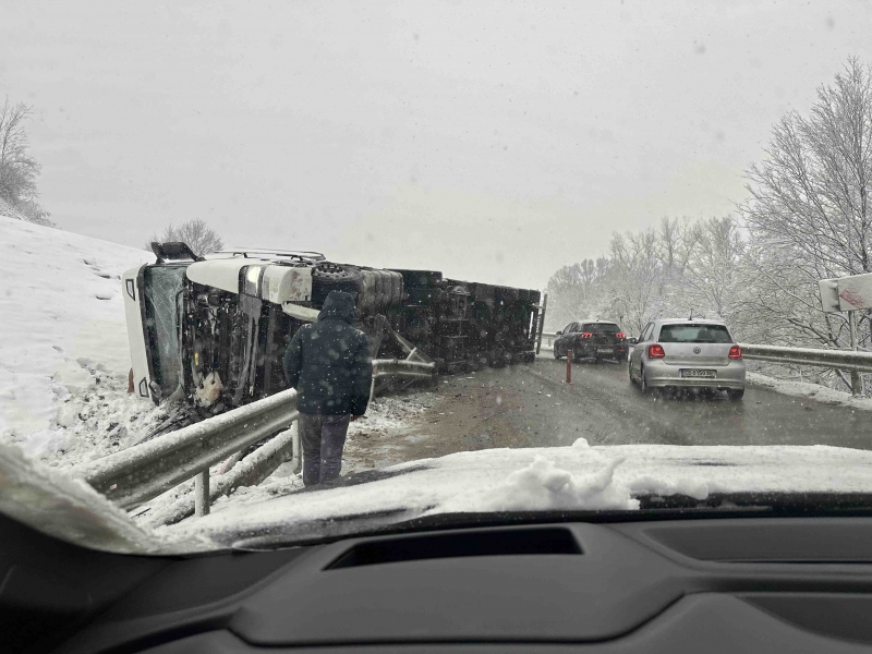ТИР се обърна и затвори скоростния път за тежкотоварни камиони между Мездра и Ботевград, научи отново първо BulNews.