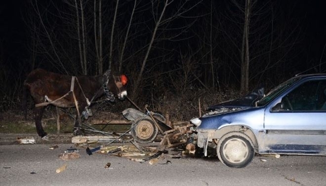 Шофьорът на автомобила не видял в тъмното каруцата, която била без осветителна сигнализация, и последвал удар между двете превозни средства.