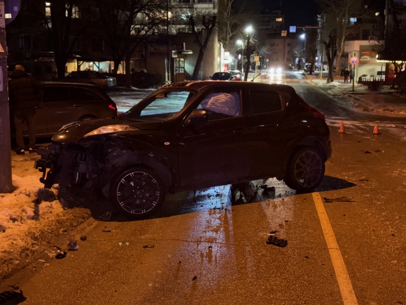 Лек автомобил БМВ с кюстендилска регистрация помел врачански „Нисан“ на ул. „Кръстьо Българията“.