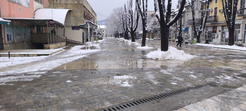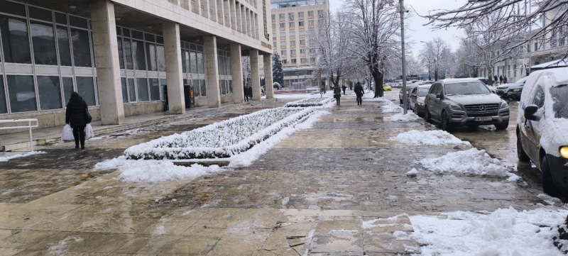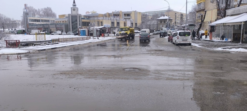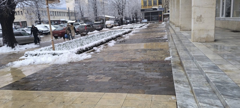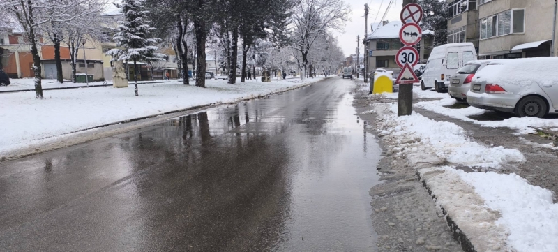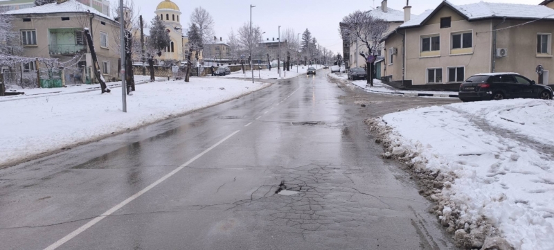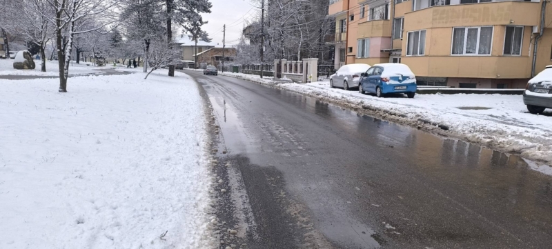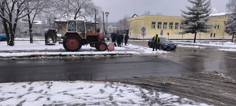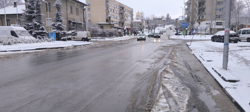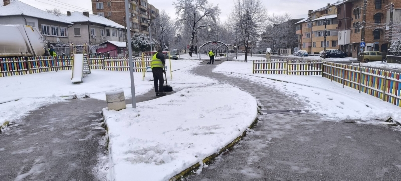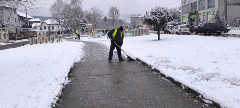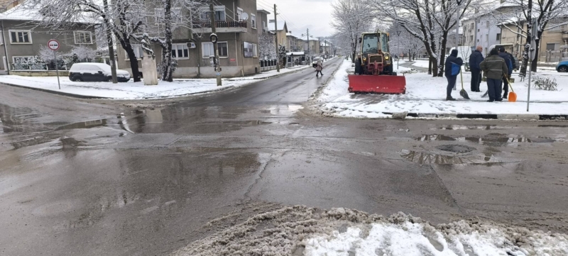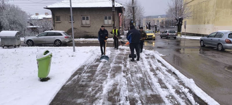 Служители на Общинско предприятие "Чистота" работят по снегопочистването и опесъчаването на градските улици и на пътищата от общинската пътна мрежа.