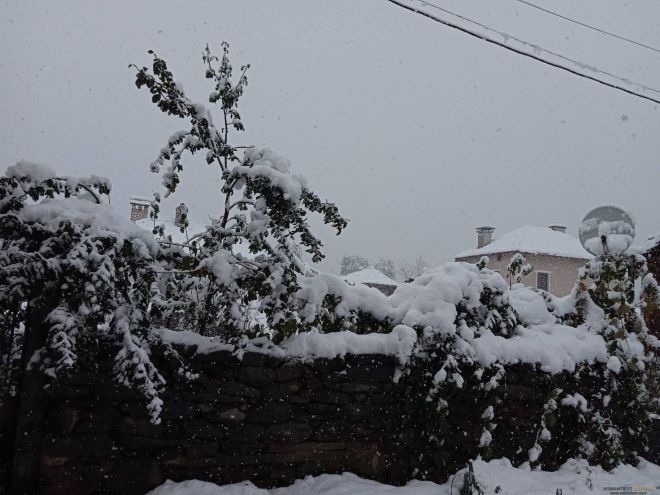 Вижте колко сняг е навалял в населените места в Монтанско, паднало дърво затвори път