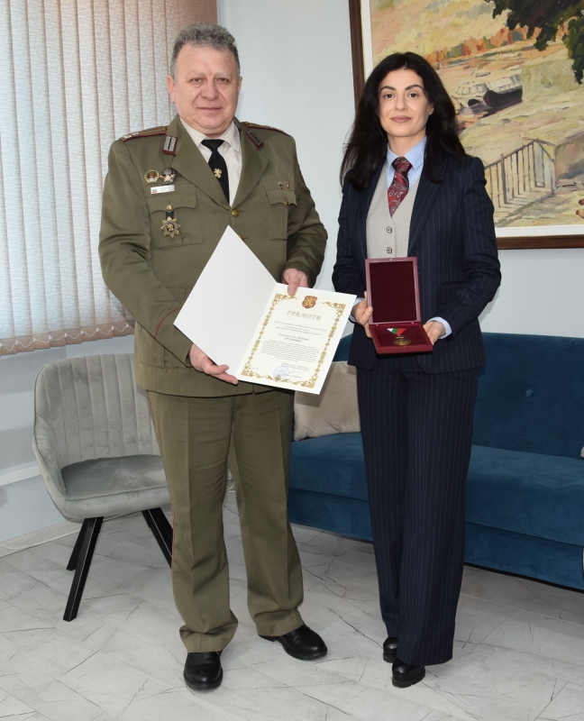 Отличието й бе връчено от началника на Военно окръжие I степен Плевен – полк. Иван Иванов за изключителни заслуги и значими постижения в опазването, съхраняването и популяризирането на военните паметници като част от националното историческо и културно наследство на Видинска област.