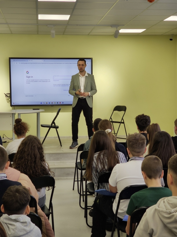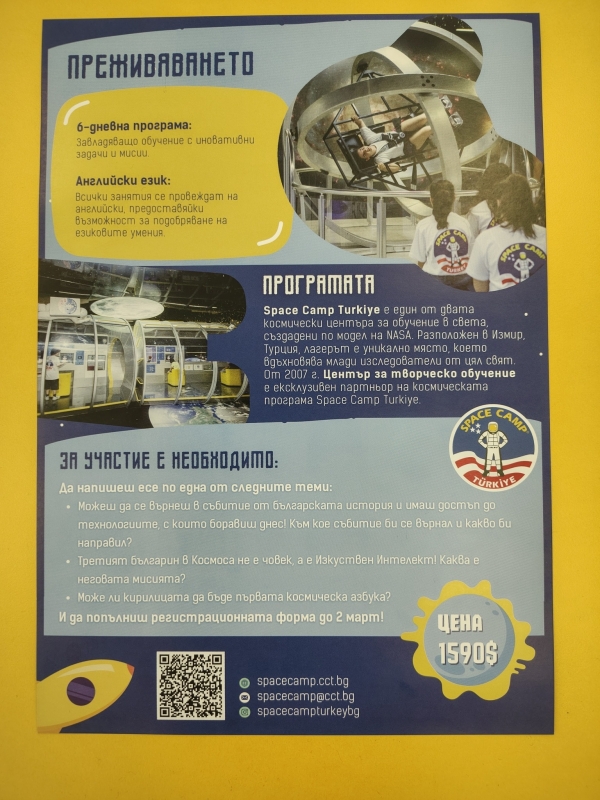 Журналистът Благой Цицелков посети ППМГ - Враца, където представи информация за кандидатстване и участие в престижния международен лагер Space Camp Turkey.
