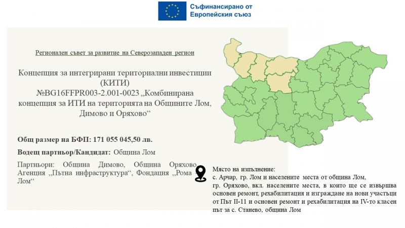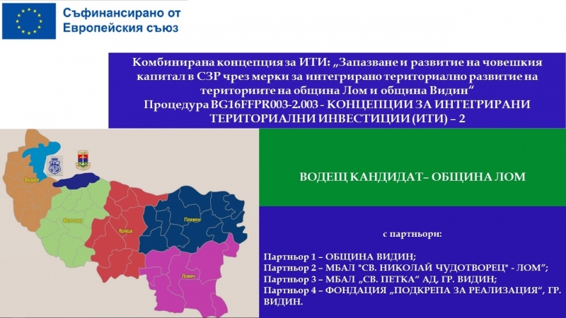 За реализацията на тези проекти са предвидени 34 706 899 лв. от проекта „Комбинирани интегрирани териториални инвестиции (КИТИ-1) на територията на общините Лом, Димово и Оряхово“, и още 33 500 000 лева, заложени в проекта „Запазване и развитие на човешкия капитал в СЗР чрез мерки за интегрирано териториално развитие на териториите на община Лом и община Видин“. (КИТИ-2)