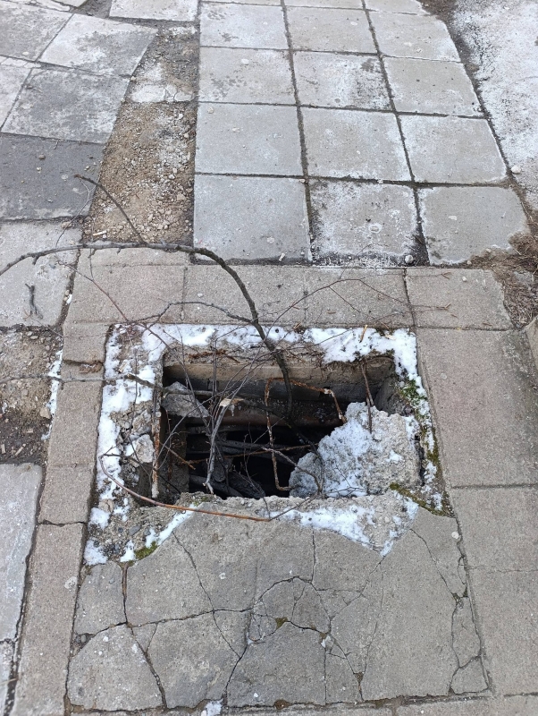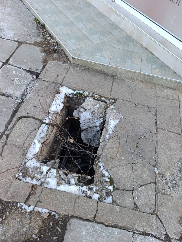 Става въпрос за Новата улица в ж.к. „Дъбника“. Опасната яма се намира от дясната страна в посока от светофара към бл. 142. Бетонният капак на съоръжението се е натрошил и половината шахта зее необезопасена.