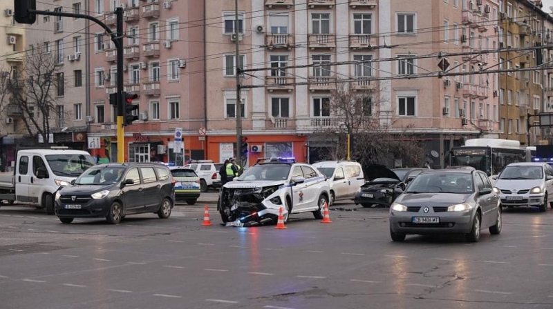 Катастрофа между два автомобила – служебен джип на Столична община и „Тойота“ – стана на ключово кръстовище в центъра на София в сряда сутрин.