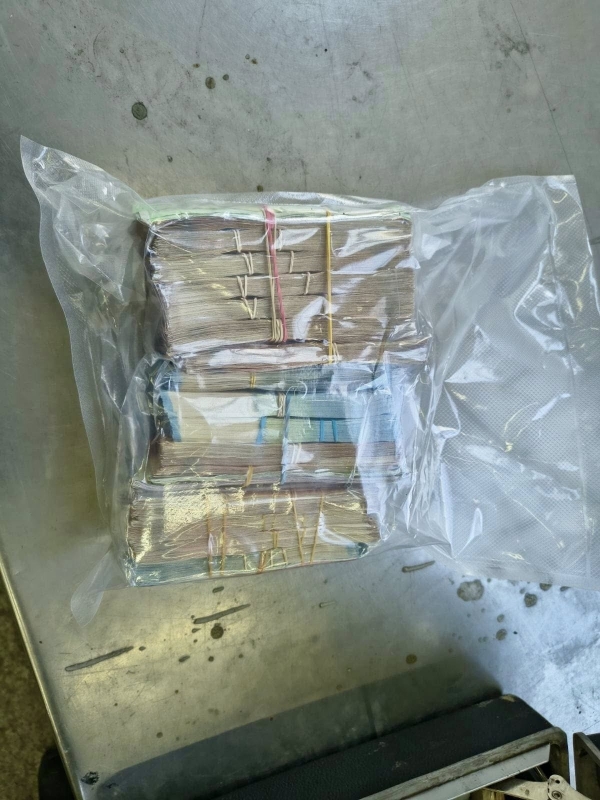 Съдържанието на единия от укритите пакети е бяло кристално вещество с тегло около 1 килограм (985 грама), реагирало на метамфетамин. В другия са открити множество евробанкноти с различен номинал, като общата им стойност възлиза на 84 500 хиляди евро.