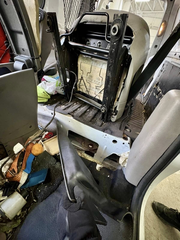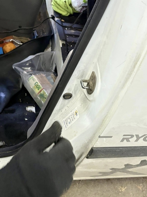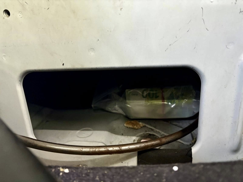 При проверката на превозното средство, извършена на ТИР терминал в митническо бюро на областния град, е установена естествена кухина зад шофьорската седалка и пода на автомобила, в която са открити 2 броя пликове.