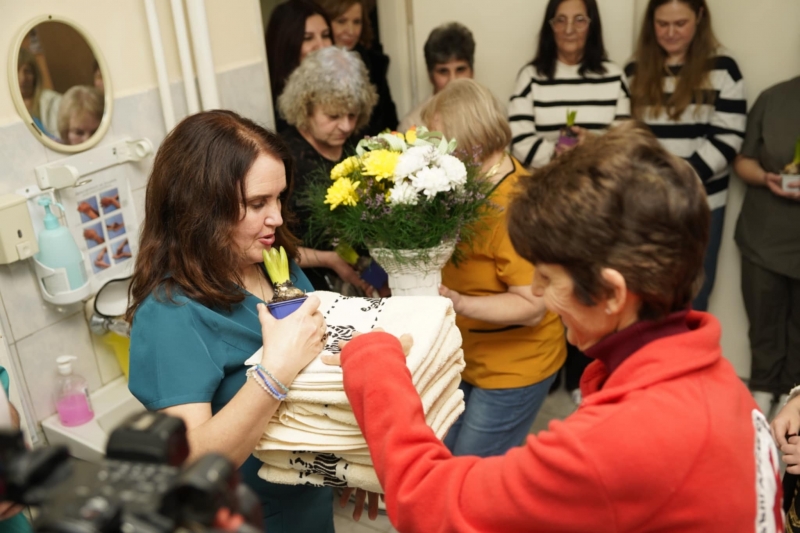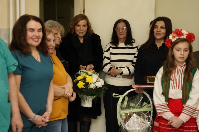 От името на Община Мездра заместник-кметът „Социално развитие и хуманитарни дейности“ Нели Минева и Елена Нанова - директор на Дирекция „Социални дейности, образование, здравеопазване, култура, спорт и туризъм“, връчиха на завеждащия Акушеро-гинекологичното отделение д-р Владимир Цеков поздравителен адрес от инж. Николинка Кътовска - за кмет на общината, съгласно Заповед №851/ 22.12.2025 г., конница с цветя и подаръчен комплект.