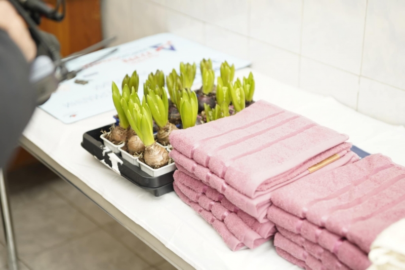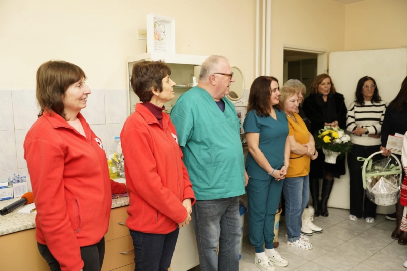 Доброволци на БЧК, водени от председателя на Общинския съвет на червенокръстката организация Наталия Христова-Горанова, също поздравиха екипа на АГО-то и подариха на акушер-гинеколозите и акушерките саксийни цветя и хавлиени кърпи.