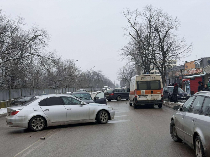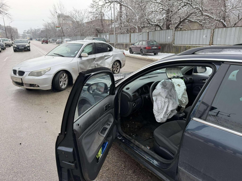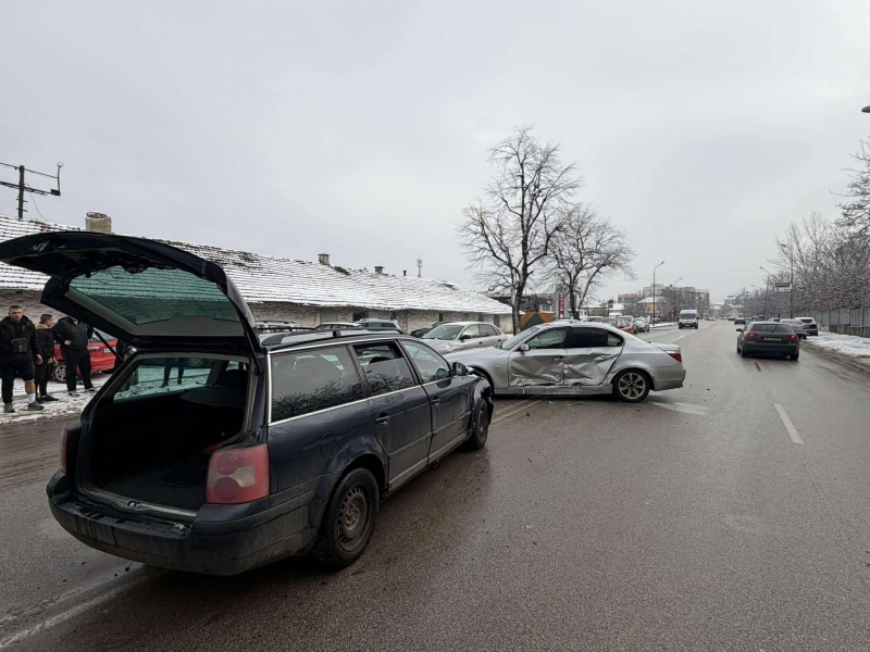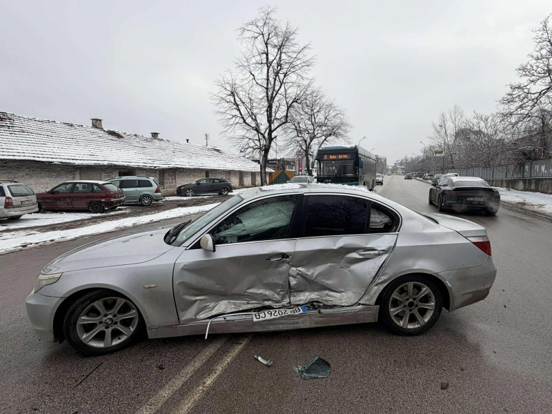 Инцидентът е отпреди минути на ул. „Илинден“, до Механотехникума. Сблъскали са се БМВ и „Фолксваген Пасат“, управляван от ученик.