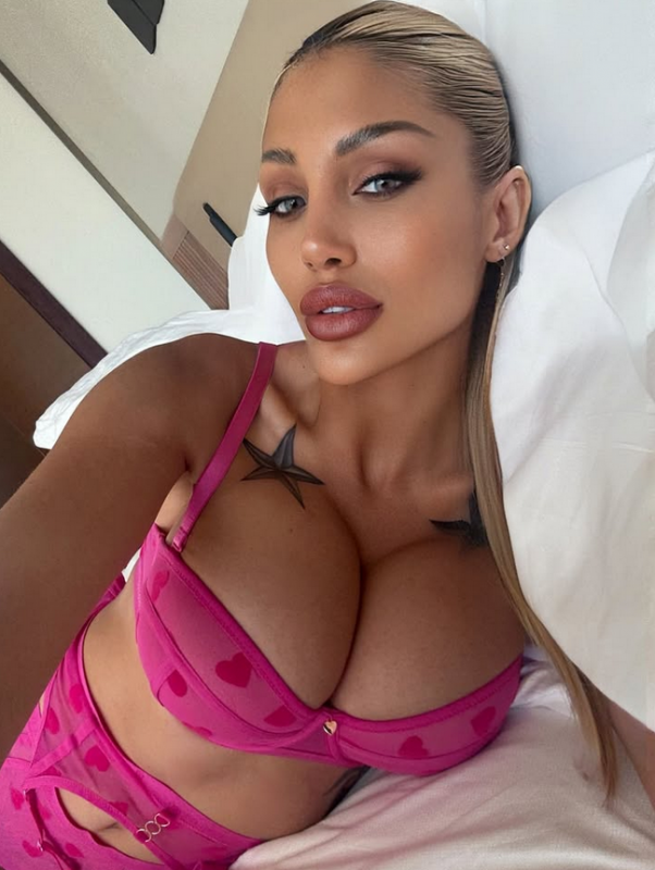 На кадрите моделът и риалити звезда позира в черно дантелено бельо, комбинирано с кожени елементи, които подчертават формите ѝ и ѝ придават дръзко излъчване.