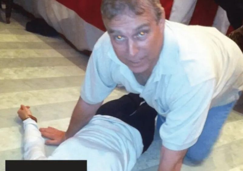 Бившият принц Андрю коленичи върху жена в нови разсекретени кадри /снимка/
