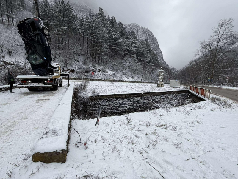 Зрелищната каскада е станала тази сутрин точно на моста преди врачанското село Згориград. По първоначална информация возилото е пътувало от селото към областния център, когато шофьорът загубил контрол над управлението заради заледения път. Колата преминала в насрещната лента за движение и паднала в реката от 4 метра височина.