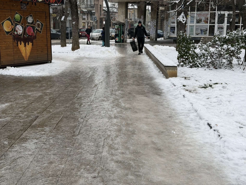 Придвижването се превръща в непосилна задача. Хората търсят пролука, през която да минат, без да се подхлъзнат и да се озоват в болница, както между другото вече стана днес с една 60-годишна жена.