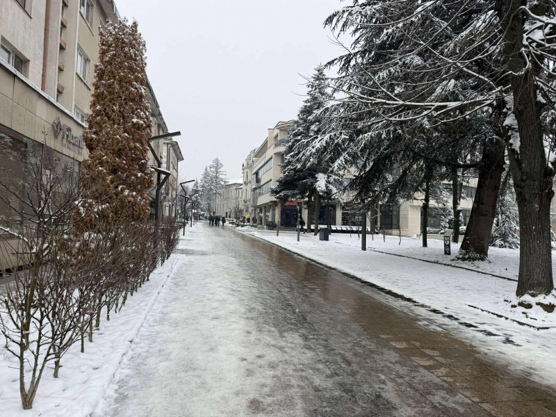 Днес над Враца вали лек дъжд. Това, в комбинация с температури около нулата, се превърна в огромен проблем. Водата замръзва веднага върху студената земя, покривайки я с дебел слой лед.