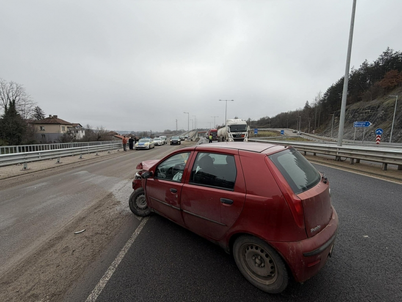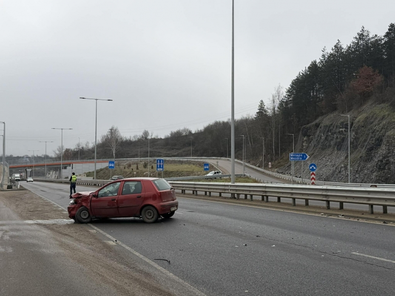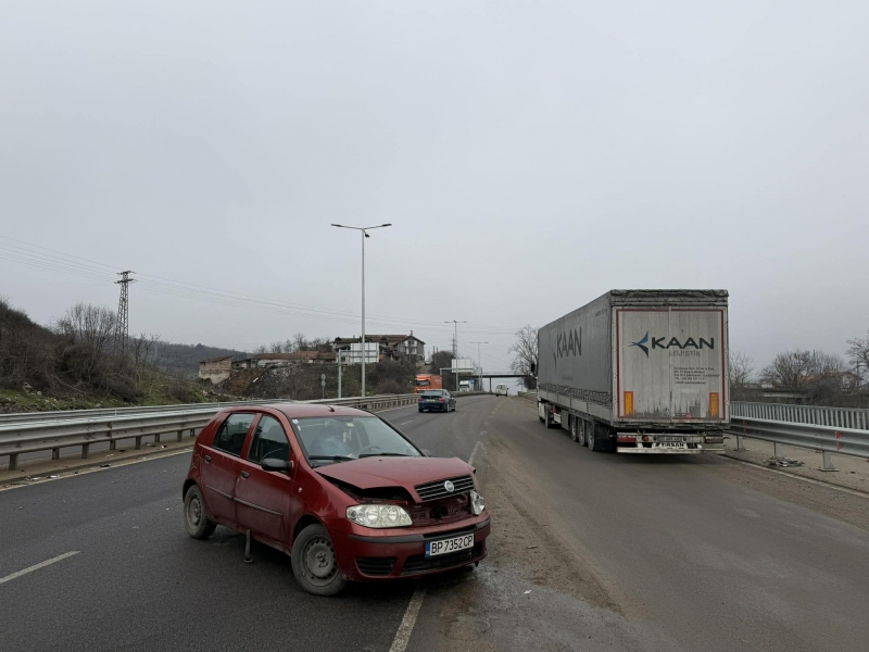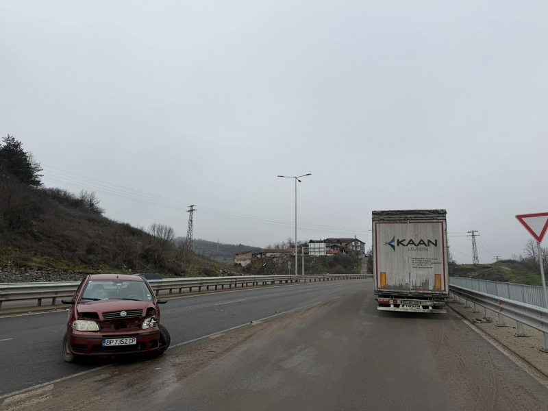 Катастрофа между кола и ТИР затруднява трафика по международен път Е-79 между Мездра и Враца, видя ексклузивно агенция BulNews.
