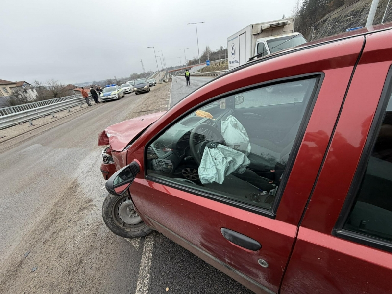 Нанесени са обаче сериозни материални щети по автомобила им, който е с доста смачкани ламарини. От удара са излезли и еърбеците му.