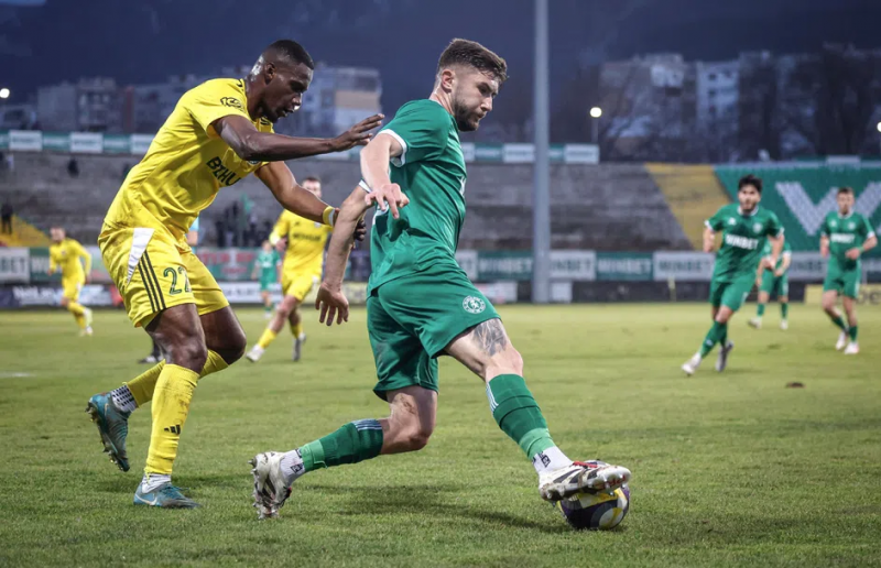 В 39-ата минута Антоан Стоянов засече центриране от корнер на близката греда с глава, но не успя да насочи топката към очертанията на вратата. До края на полувремето повече положения нямаше и така двата тима се оттеглиха в почивка.