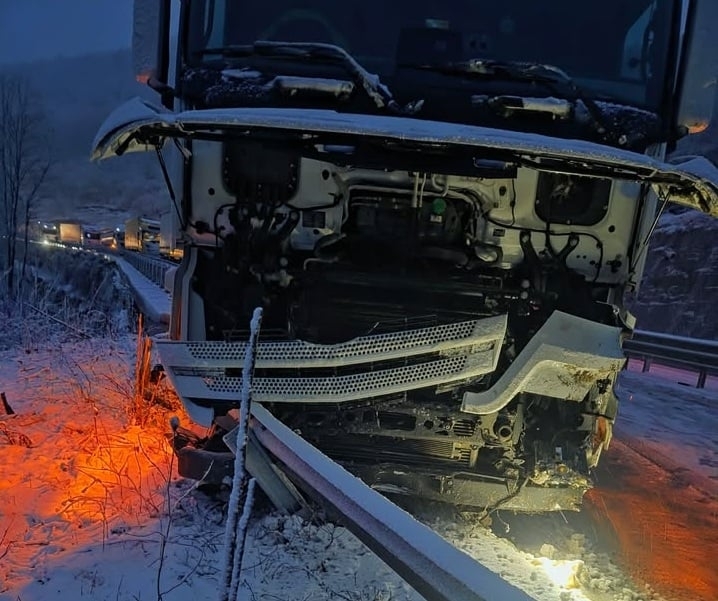 Към момента не е ясно какво е състоянието на шофьора на камиона, но пътуващи в региона твърдят, че той не е пострадал.