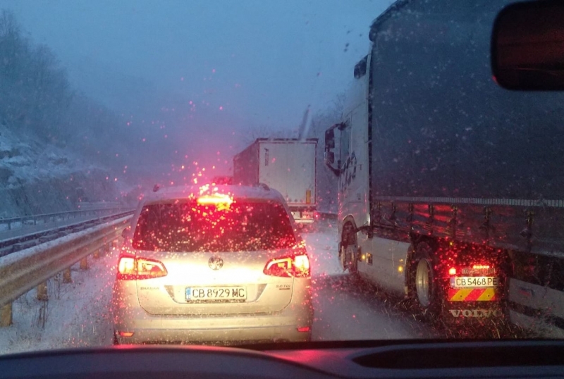 Внимание, шофьори! Катастрофирал ТИР затвори скоростния път Ботевград-Мездра, задръстването е километрично /снимки/
