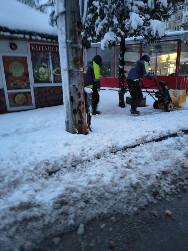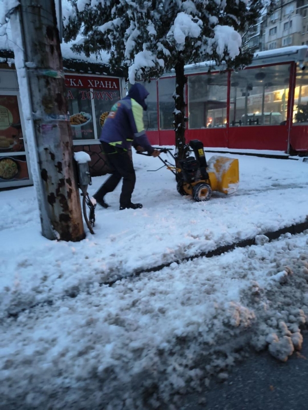 За почистването на тротоарите и спирките на градския транспорт са ангажирани 65 служители на предприятието, които извършват ръчно почистване и разпръскване на материали против заледяване. Малките улици и стръмните участъци се обработват с трактори, за да се осигури нормално придвижване.