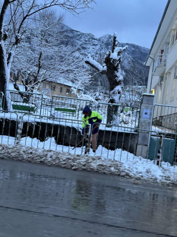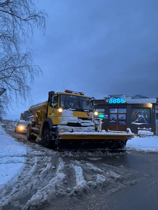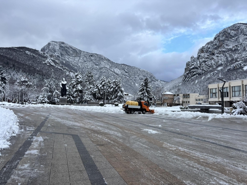Централната пешеходна зона е почистена и третирана срещу заледяване. Проходими при зимни условия са и пътните участъци към населените места в общината.