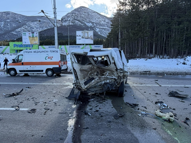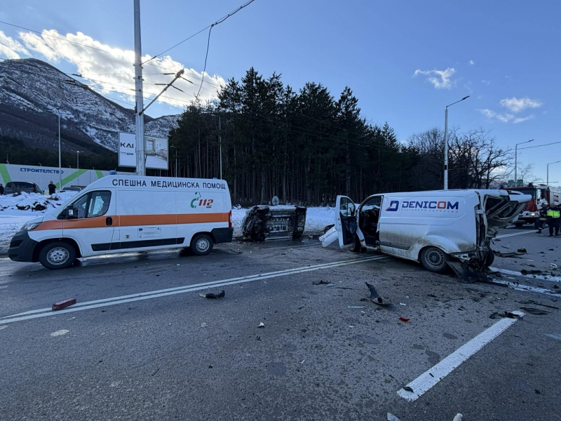 По първоначална информация при тежкия удар са пострадали двама души – шофьорът на буса и жена от леката кола. Те бяха прегледани на място от два екипа на спешна помощ, а след това линейките ги транспортираха към МБАЛ "Хрисо Ботев" в съзнание.
