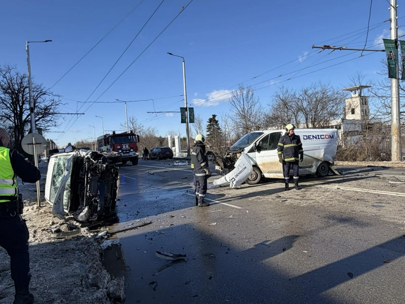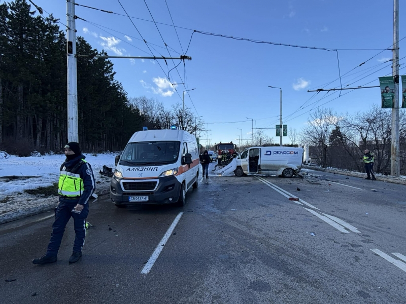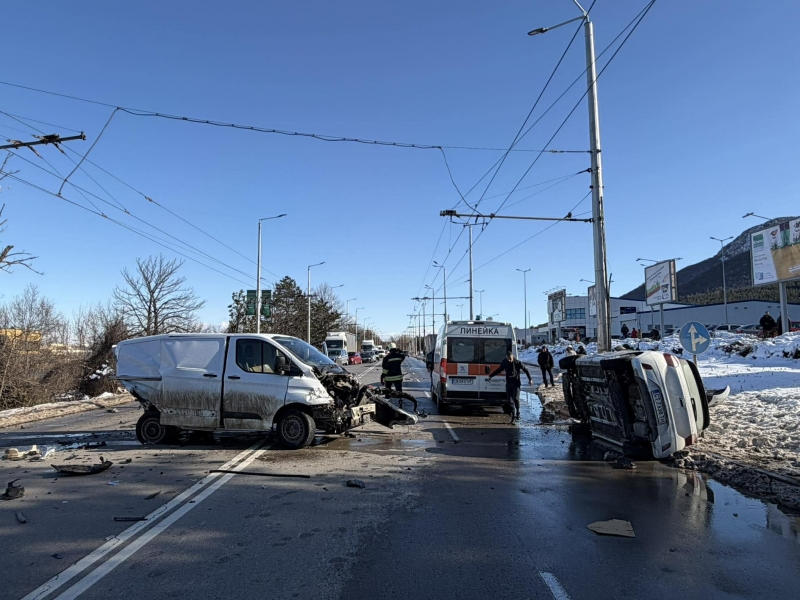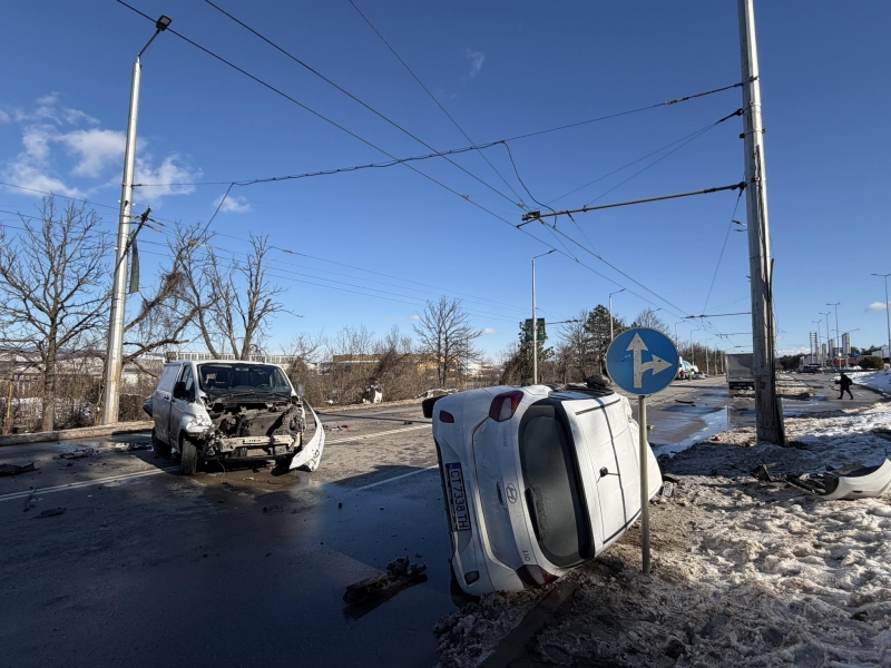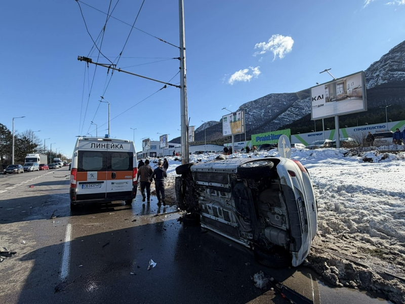 Колата се преобърнала настрани и ударила камионче „Ивеко“, също със софийски номера, което се движело пред нея.