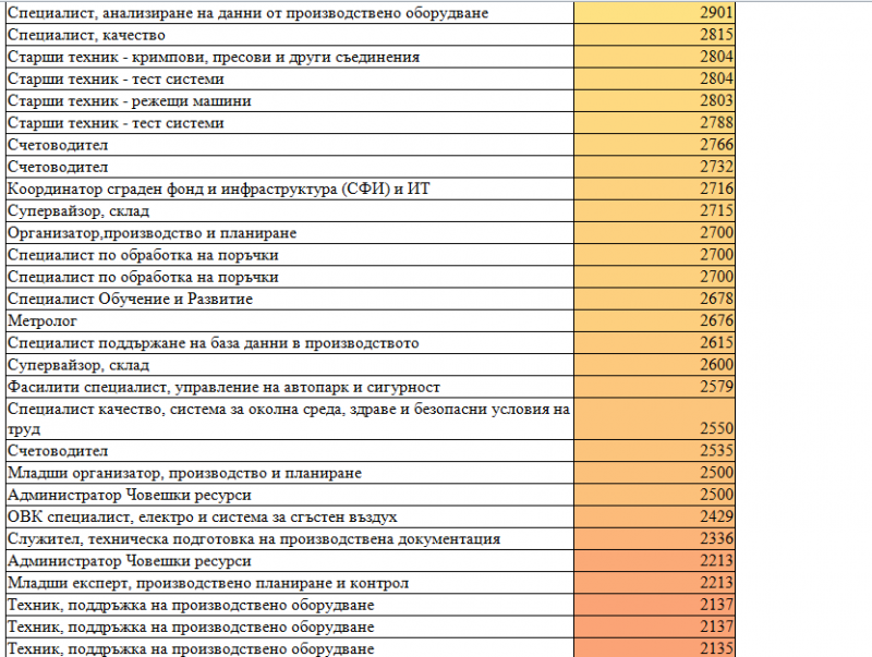 *В галерията по-долу може да видите подробно заплатите за всяка длъжност