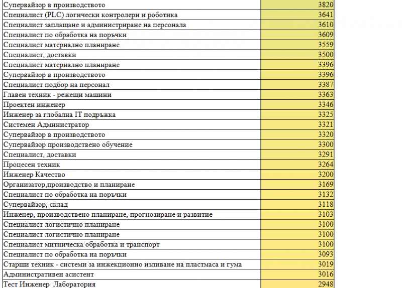 Според таблицата, с която BulNews се сдоби, най-ниско заплащане са получавали назначените на длъжността отчетник производство. Ежемесечно те са взимали наистина скромните 1 403 лева за своя труд. Наш репортер обаче разговаря с няколко служители на фалиралия завод, които споделиха, че в предприятието има и много хора, работещи на щат от 1 329.30 лв. като „оператор производство“.