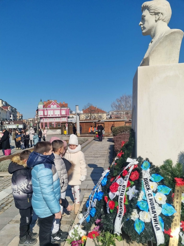 С емоционален рецитал на дечица от СУ „Димитър Маринов“, с ръководител Мелина Андреева, стартира в Лом отбелязването на 153-годишнината от кончината на Васил Левски.