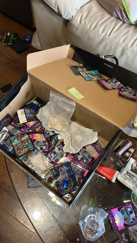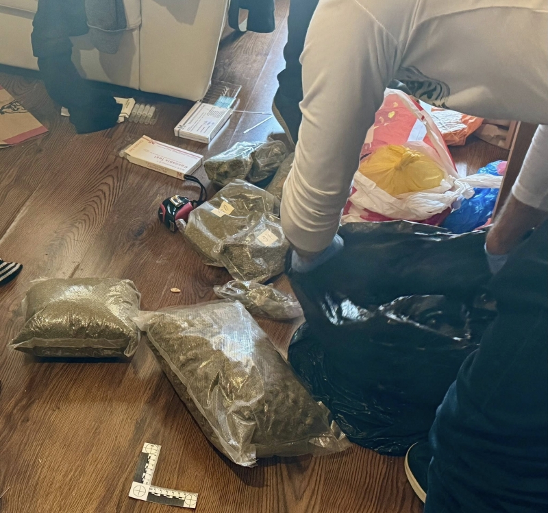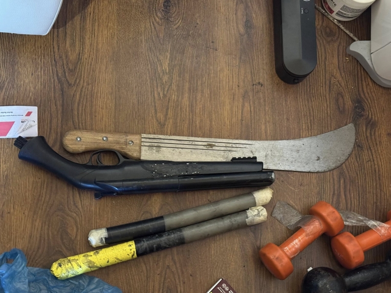 При действията по разследването на 5 адреса са открити - 550 гр амфетамин, 100 гр метамфетамин, 2 кг марихуана, везна, мобилни телефони, палки и мачете, пушка и патрони.