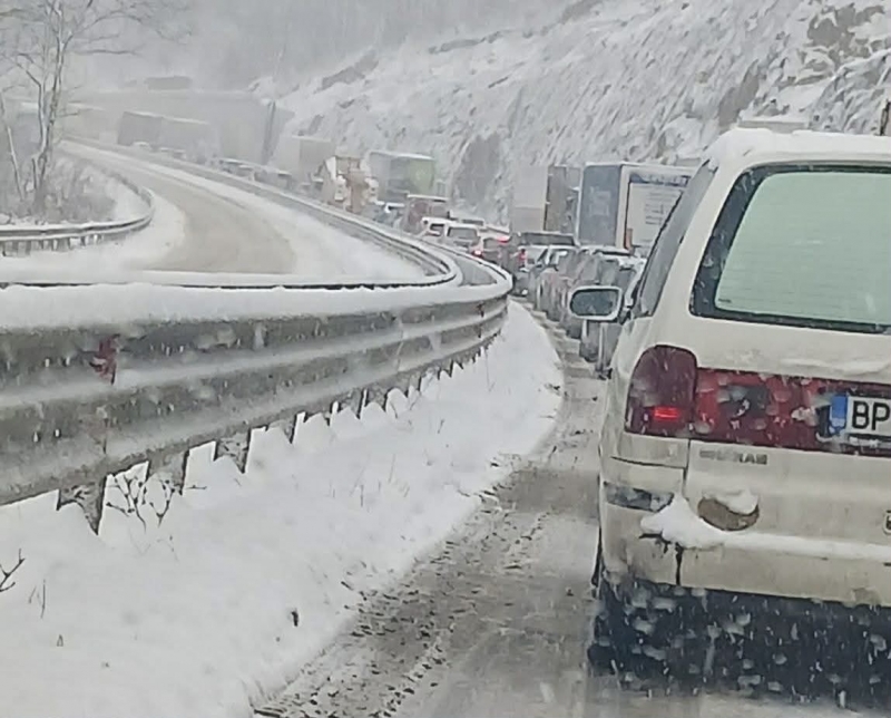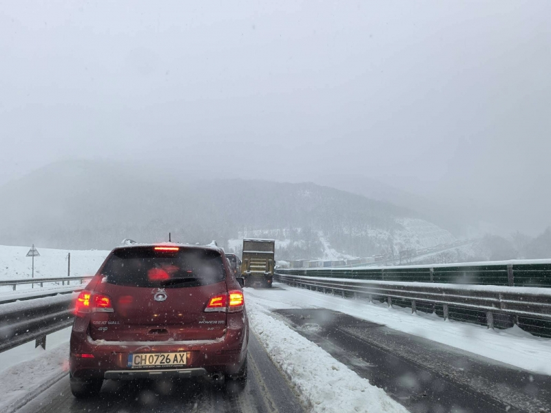 Снежен капан: Адско задръстване на пътя Мездра-Ботевград, вижте защо /снимки/
