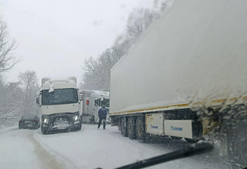 ТИР-ове закъсаха на Е-79 край Монтана, видя агенция BulNews.