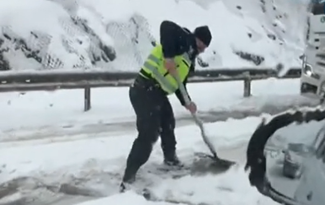 Малко по-рано, от кадри, разпространени в социалните мрежи, стана ясно, че служители на реда са помогнали на други водачи на ТИР-ове край мездренското село Лютидол, като са разчиствали с лопати снега пред камионите.