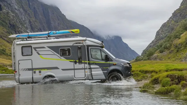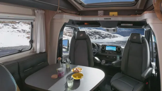 "Специално този кемпер е 4х4 система, с автоматична скоростна кутия, няма бързи и бавни скорости, всичко е автоматично при него. Минава на места, където може да отиде и нормален джип, проходим е в зимни условия, на пясък, на камъни, няма проблем с него относно проходимост.