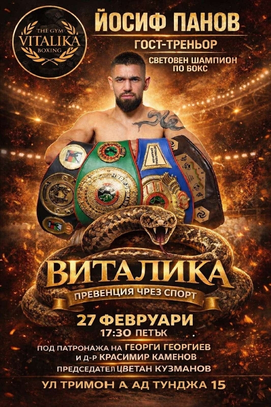 Световният шампион по бокс Йосиф Панов ще гостува в Монтана на 27 февруари от 17:30 часа в залата на СК „Виталика“. Събитието е част от инициативата „Виталика: Превенция чрез спорт“, която цели да насърчи младите хора към дисциплина, спорт и здравословен начин на живот.