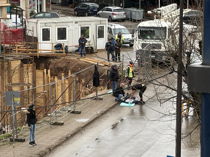 Сцената като от филм е на ул. „Кръстьо Българията“, при площад „Родина“. Възрастен човек, както си вървял по тротоара в посока Пробива, просто се строполил на земята насред шосето.