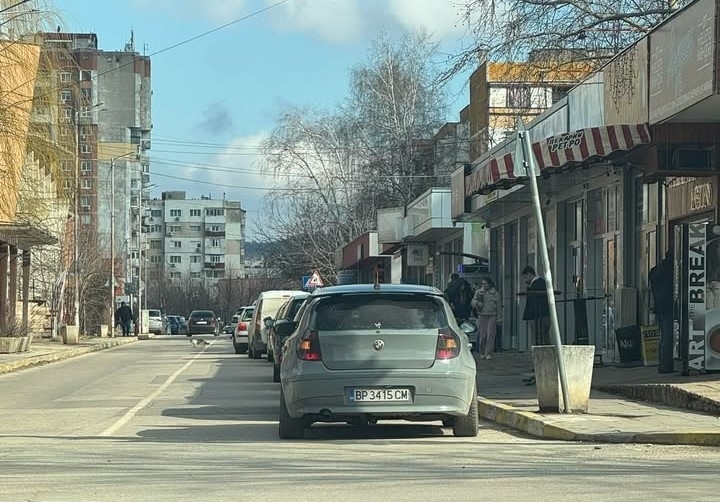 На фотоса се вижда, че това става на известната за врачани „Нова улица“, на която се разпростират доста обекти, които имат непрекъснат поток от потребители. Улицата е изключително оживена и паркирането там е въпрос на късмет. Но в случая водачът на БМВ-то не е разчитал на късмет, а на наглост.