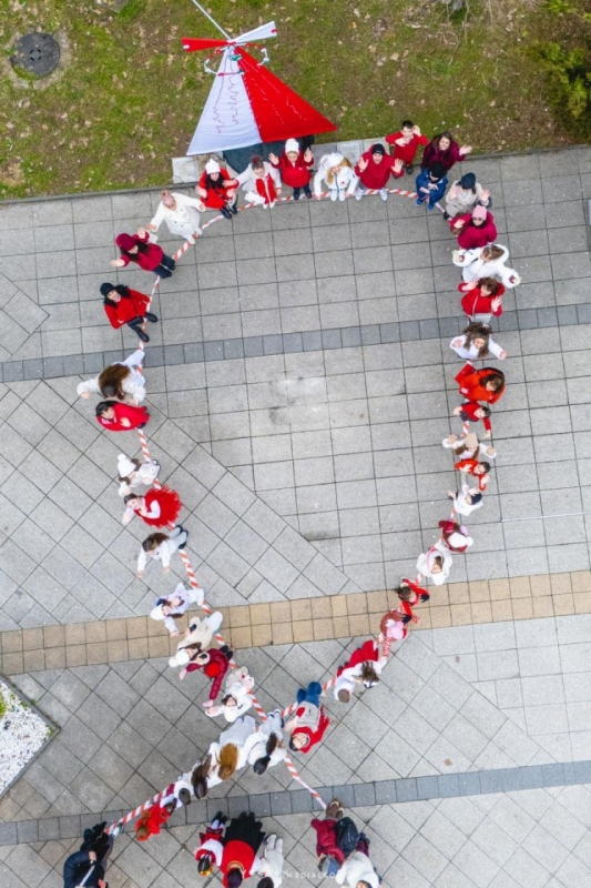 Деца и възрастни се събраха в 10.30 часа, между сградата на местната администрация и НЧ „Развитие – 1869“, облечени в червено и бяло. Те заеха място в предварително очертания контур и заедно оформиха впечатляваща мартеница, символ на здраве и надежда.