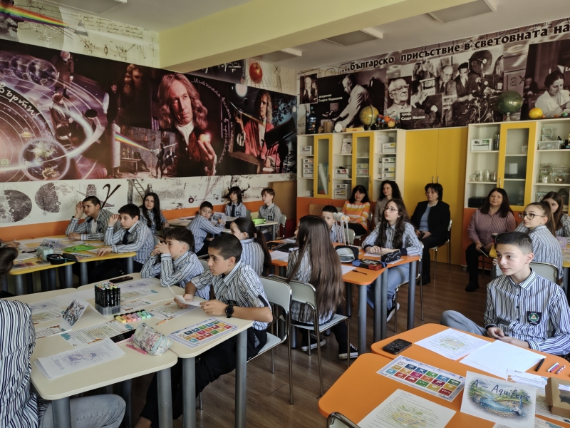 Чрез интегрален STREAM подход учениците проследиха пътя на една капка вода и изследваха връзките между природните процеси, производството на енергия и съвременните научни методи за опазване на водните ресурси и целите за устойчиво развитие на ООН. Шестокласниците работиха в екипи, анализираха научна информация и обсъждаха значението на водата като природен ресурс. Чрез различни роли учениците разгледаха темата от гледна точка на науката, технологиите, изследванията и инженерните решения, а в края на занятието представиха своите изводи и предложения. Работата в екип и публичното представяне на резултатите им позволиха да развият умения за аргументация, сътрудничество и критично мислене.