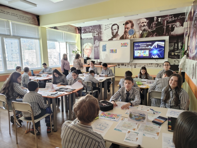 Учениците от VI а клас на Профилираната природо-математическа гимназия участваха в интердисциплинарен урок на тема „Историята на една капка вода – как ядрената наука помага за устойчиво бъдеще“. Урокът бе организиран от г-жа Пепа Павлова, координатор на проект Еразъм+ и старши учител по физика и астрономия, и г-жа Ивалина Райкова – старши учител по биология и здравно образование.