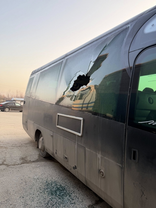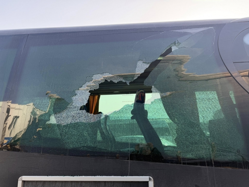 Фирмата уточнява, че всички нейни автобуси са с потрошени предни и странични стъкла.